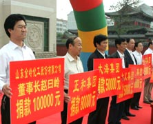 在6月1日廣饒縣開展的“慈心一日捐”活動(dòng)中,公司董事長(zhǎng)趙曰嶺個(gè)人向廣饒縣慈善總會(huì)捐款10萬元。近幾年來,在企業(yè)迅速發(fā)展的同時(shí),趙總不忘回報(bào)社會(huì),積極為地方經(jīng)濟(jì)發(fā)展和社會(huì)慈善事業(yè)捐款捐物,幫助附近村莊修路、打井,至今已累計(jì)捐款500多萬元,樹立了一個(gè)勇于承擔(dān)社會(huì)責(zé)任企業(yè)家的良好形象。圖為企業(yè)發(fā)展部趙曰森經(jīng)理代表趙董事長(zhǎng)出席捐款儀式。