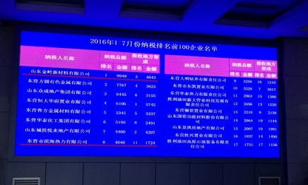 近日,東營經(jīng)濟(jì)技術(shù)開發(fā)區(qū)管委會公布今年1—7月份納稅排名前100名企業(yè)名單,集團(tuán)公司的兩個全資子公司榜上有名,其中金嶺新材料有限公司高居榜首,濱海熱力有限公司位居第八。