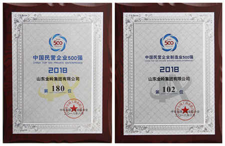 2018年8月29日,“2018中國(guó)民營(yíng)企業(yè)500強(qiáng)峰會(huì)”在遼寧沈陽(yáng)舉行,會(huì)議發(fā)布了《2018中國(guó)民營(yíng)企業(yè)500強(qiáng)榜單及分析報(bào)告》,金嶺集團(tuán)入榜“2018中國(guó)民營(yíng)企業(yè)500強(qiáng)”,位列第180位,同時(shí)入榜“2018中國(guó)民營(yíng)企業(yè)制造業(yè)500強(qiáng),”位列第102位。