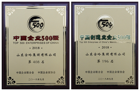 2018年9月2日,中國企業(yè)聯(lián)合會、中國企業(yè)家協(xié)會在陜西西安舉行2018中國500強企業(yè)高峰論壇,發(fā)布 “中國企業(yè)500強”榜單。金嶺集團位列“2018中國企業(yè)500強”第408位,“2018中國制造業(yè)企業(yè)500強”第196位。