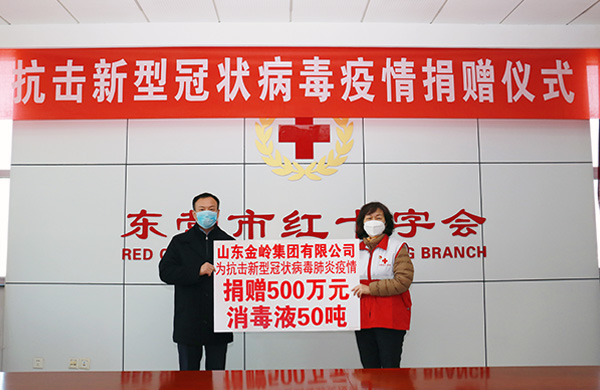 金嶺集團(tuán)向東營(yíng)市紅十字會(huì)愛心捐贈(zèng)500萬元及50噸消毒液