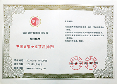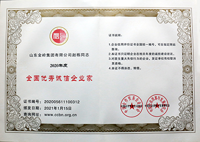 2021年1月16日,由中國(guó)合作貿(mào)易企業(yè)協(xié)會(huì)、中國(guó)企業(yè)改革與發(fā)展研究會(huì)主辦的“2021中國(guó)企業(yè)信用發(fā)展論壇暨第十二屆誠(chéng)信公益盛典”在北京隆重召開(kāi)。在會(huì)上,金嶺集團(tuán)獲評(píng)“中國(guó)AAA級(jí)信用企業(yè)”,總裁趙棟獲評(píng)“全國(guó)優(yōu)秀誠(chéng)信企業(yè)家”。會(huì)議還發(fā)布了2020年度中國(guó)企業(yè)信用500強(qiáng)系列榜單,金嶺集團(tuán)成功入圍“中國(guó)企業(yè)信用500強(qiáng)”、“中國(guó)制造業(yè)企業(yè)信用100強(qiáng)”、“中國(guó)民營(yíng)企業(yè)信用100強(qiáng)”,受到大會(huì)表彰。多年來(lái),金嶺集團(tuán)始終高度重視企業(yè)誠(chéng)信體系建設(shè),不斷加強(qiáng)合同履約考核,提升了全體員工的誠(chéng)信意識(shí),營(yíng)造了“守信光榮,失信可恥”的氛圍,樹(shù)立了良好的企業(yè)信用形象。