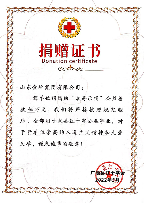 2022年5月8日,在廣饒縣首屆“5.8人道公益日”眾籌樂捐活動啟動儀式上,金嶺集團(tuán)向廣饒縣紅十字會現(xiàn)場捐贈人民幣5萬元。多年來,公司大力支持社會公益事業(yè),積極參與愛心捐贈活動,多次受到表彰,彰顯了公司強(qiáng)烈的社會責(zé)任感,體現(xiàn)了公司的擔(dān)當(dāng)精神。