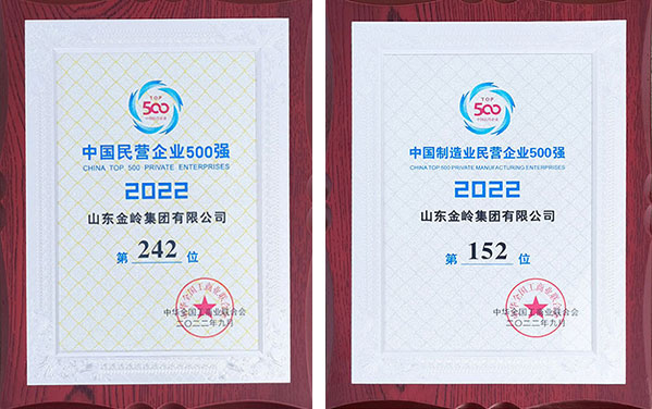 金嶺集團入圍2022“中國民營企業(yè)500強”、 “中國制造業(yè)民營企業(yè)500強”