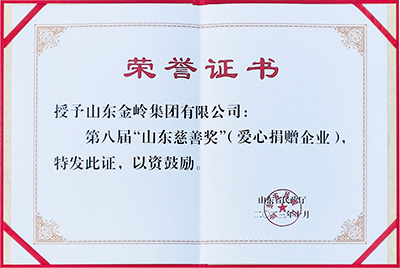 2023年10月份,山東省民政廳授予山東金嶺集團有限公司“第八屆山東慈善獎愛心捐贈企業(yè)”榮譽稱號,以表彰公司在參與公益慈善事業(yè),推動山東新時代慈善事業(yè)高質量發(fā)展中做出的突出貢獻。
