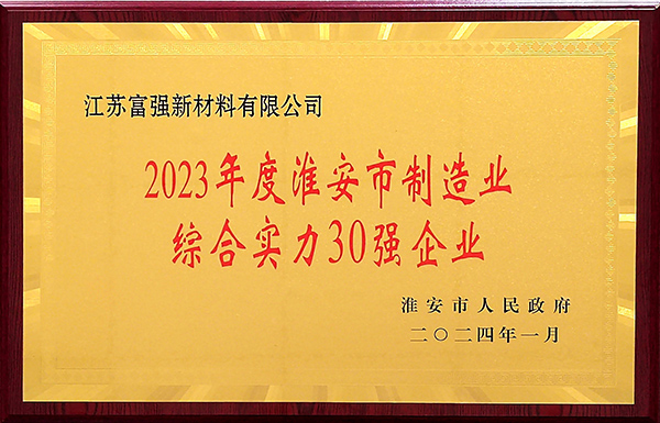 2024年2月27日,在淮陰區(qū)委區(qū)政府召開的全區(qū)經(jīng)濟(jì)工作會議暨新型工業(yè)化推進(jìn)會上,江蘇富強(qiáng)新材料有限公司被評為“2023年度淮陰區(qū)工業(yè)開票銷售二十強(qiáng)企業(yè)” “2023年度淮陰區(qū)工業(yè)技術(shù)改造升級示范企業(yè)”。
