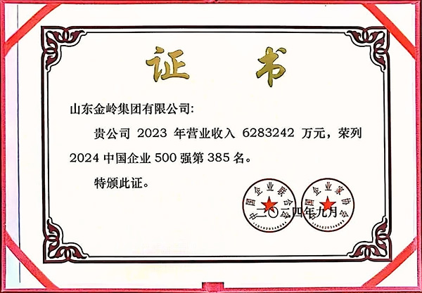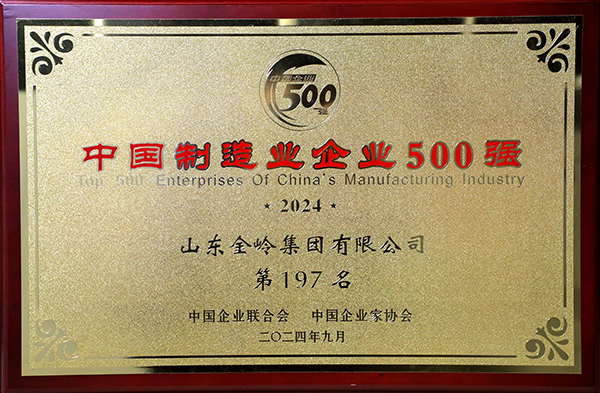 2024年9月,中國企業(yè)聯(lián)合會、中國企業(yè)家協(xié)會發(fā)布2024中國企業(yè)500強(qiáng)、2024中國制造業(yè)企業(yè)500強(qiáng)榜單,金嶺集團(tuán)位列“2024中國企業(yè)500強(qiáng)”第385位;“2024中國制造業(yè)企業(yè)500強(qiáng)”第197位;公司已連續(xù)多年入圍中國企業(yè)500強(qiáng)、中國制造業(yè)企業(yè)500強(qiáng)。