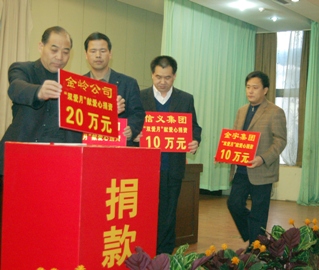 3月7日,在大王鎮(zhèn)第十九個(gè)雙愛月活動(dòng)動(dòng)員大會(huì)上,我公司捐款人民幣20萬元。多年來,在企業(yè)快速發(fā)展的同時(shí),公司不忘回報(bào)社會(huì),積極支持地方經(jīng)濟(jì)發(fā)展,并熱衷社會(huì)公益事業(yè),幫助大王鎮(zhèn)建學(xué)校,敬老院、興修水利、道路、捐資助學(xué),扶危濟(jì)困等,受到了社會(huì)各界的好評(píng)。