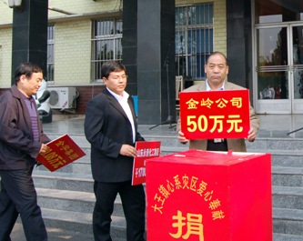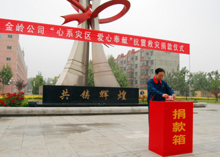 四川地震災(zāi)情牽動(dòng)著每一個(gè)金嶺人的心,災(zāi)情發(fā)生后公司向全體員工發(fā)出了“一方有難,八方支援”向?yàn)?zāi)區(qū)捐款的倡議,并于5月18日在辦公樓前舉行了“心系災(zāi)區(qū)、愛心奉獻(xiàn)”抗震救災(zāi)捐款儀式,大家紛紛伸出援助之手,僅一天時(shí)間就捐款50萬(wàn)元,其中董事長(zhǎng)趙曰嶺捐款25萬(wàn)元,向?yàn)?zāi)區(qū)人民奉獻(xiàn)上金嶺人的一片愛心。
