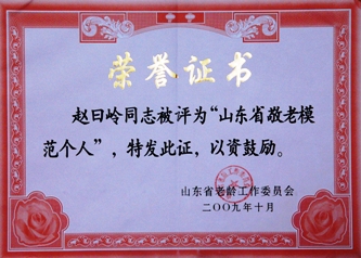 近日,公司董事長趙曰嶺被山東省老齡委評為“山東省敬老模范個人”,此次評選是經(jīng)過鎮(zhèn)、縣、市、省等各部門層層審核后確定的,我縣僅有趙總一人獲此殊榮。