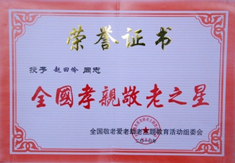 近日,公司董事長趙曰嶺被全國老齡辦、民政部、教育部、國家廣電總局、共青團(tuán)中央、全國婦聯(lián)、中國關(guān)工委評(píng)為“全國孝親敬老之星”。