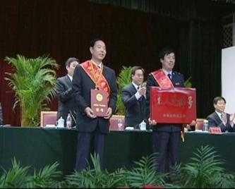 4月27日,在東營市慶祝五一國際勞動節(jié)暨先模表彰大會上,市委書記張秋波為董事長趙曰嶺頒發(fā)全國五一勞動獎?wù)伦C書。