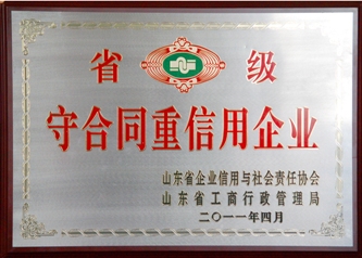 近日,公司被山東省企業(yè)信用與社會(huì)責(zé)任協(xié)會(huì)、山東省工商行政管理局評(píng)為省級(jí)守合同重信用企業(yè)。