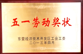 近日,東營經(jīng)濟(jì)技術(shù)開發(fā)區(qū)工會(huì)工委授予新材料公司五一勞動(dòng)獎(jiǎng)狀榮譽(yù)稱號(hào),以表彰我公司搶抓機(jī)遇、積極作為,在加快黃藍(lán)經(jīng)濟(jì)區(qū)建設(shè)中作出的突出貢獻(xiàn)。